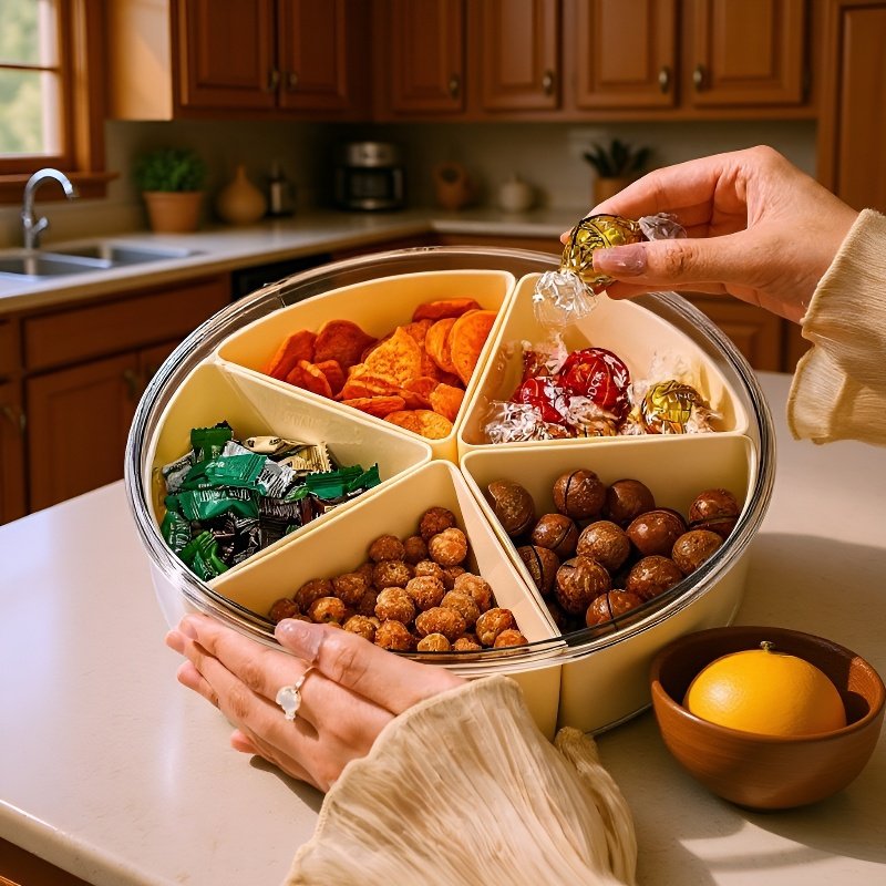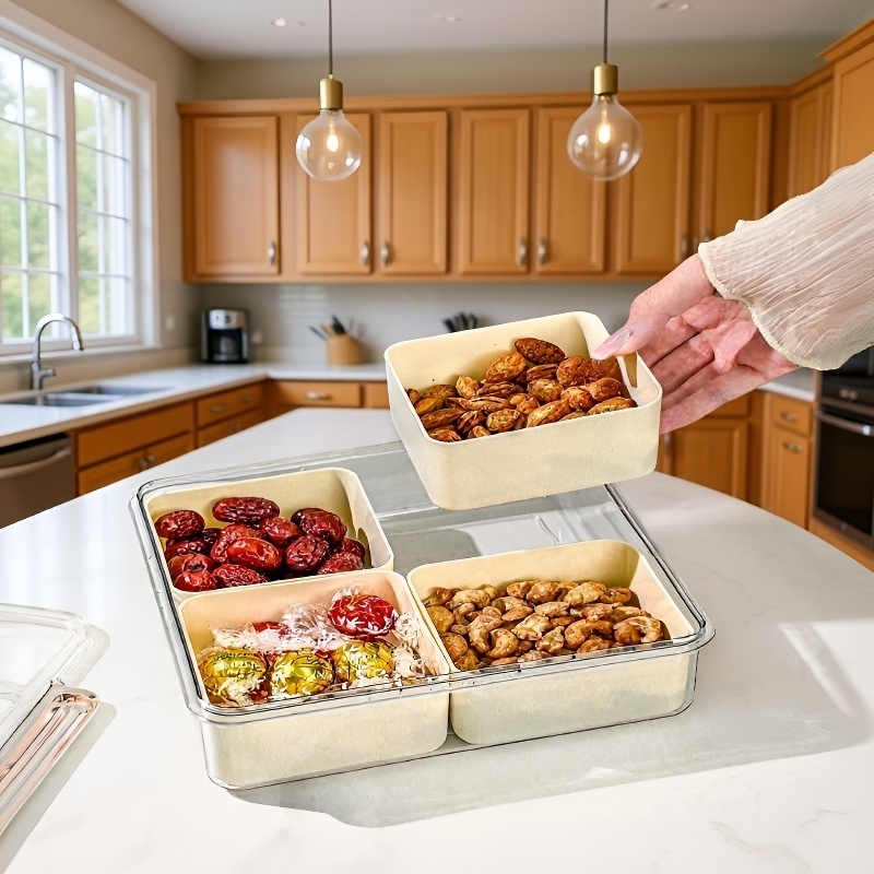 ● Features multiple spacious compartments, allowing you to store a variety of snacks, nuts, and treats separately without mixing flavors or aromas.